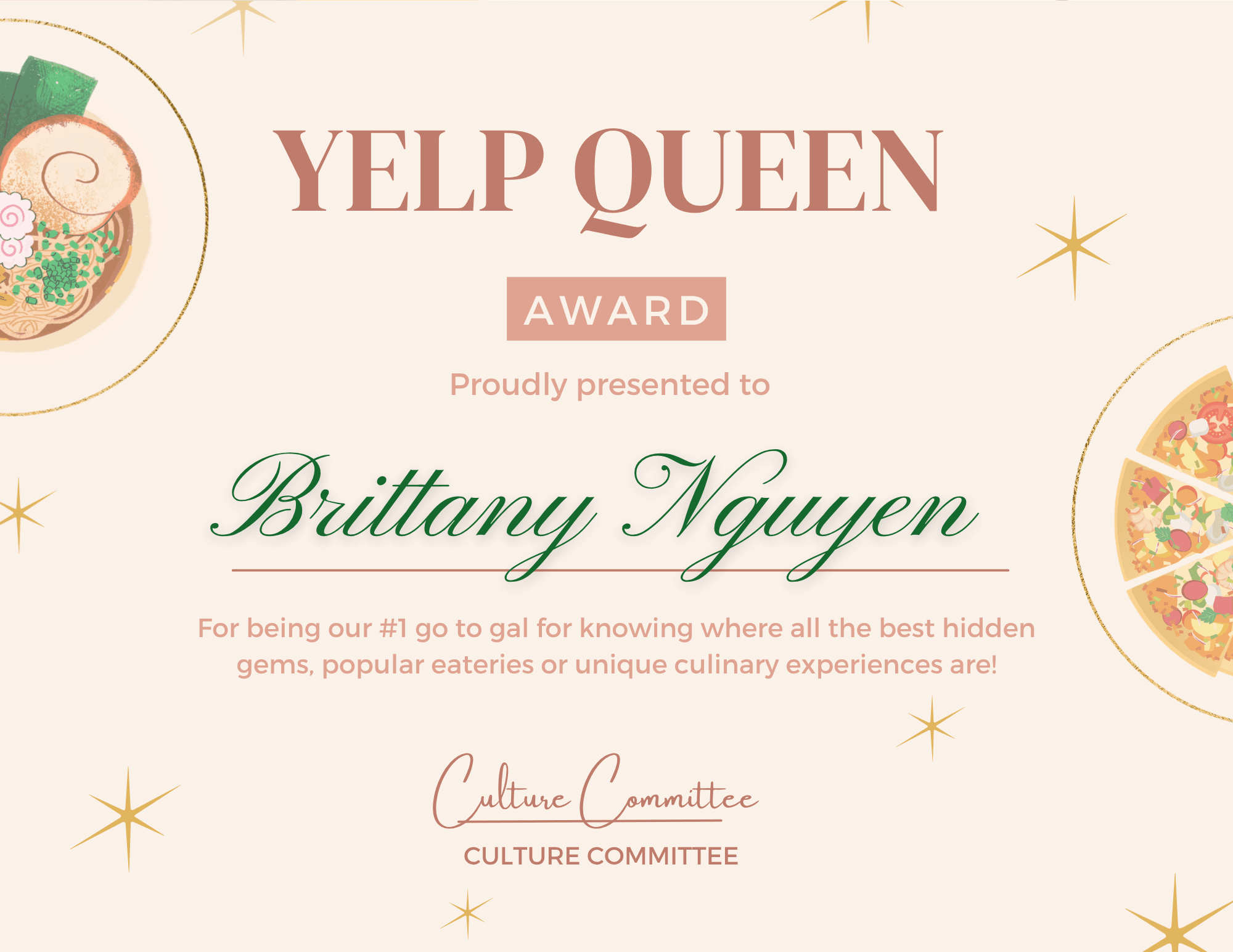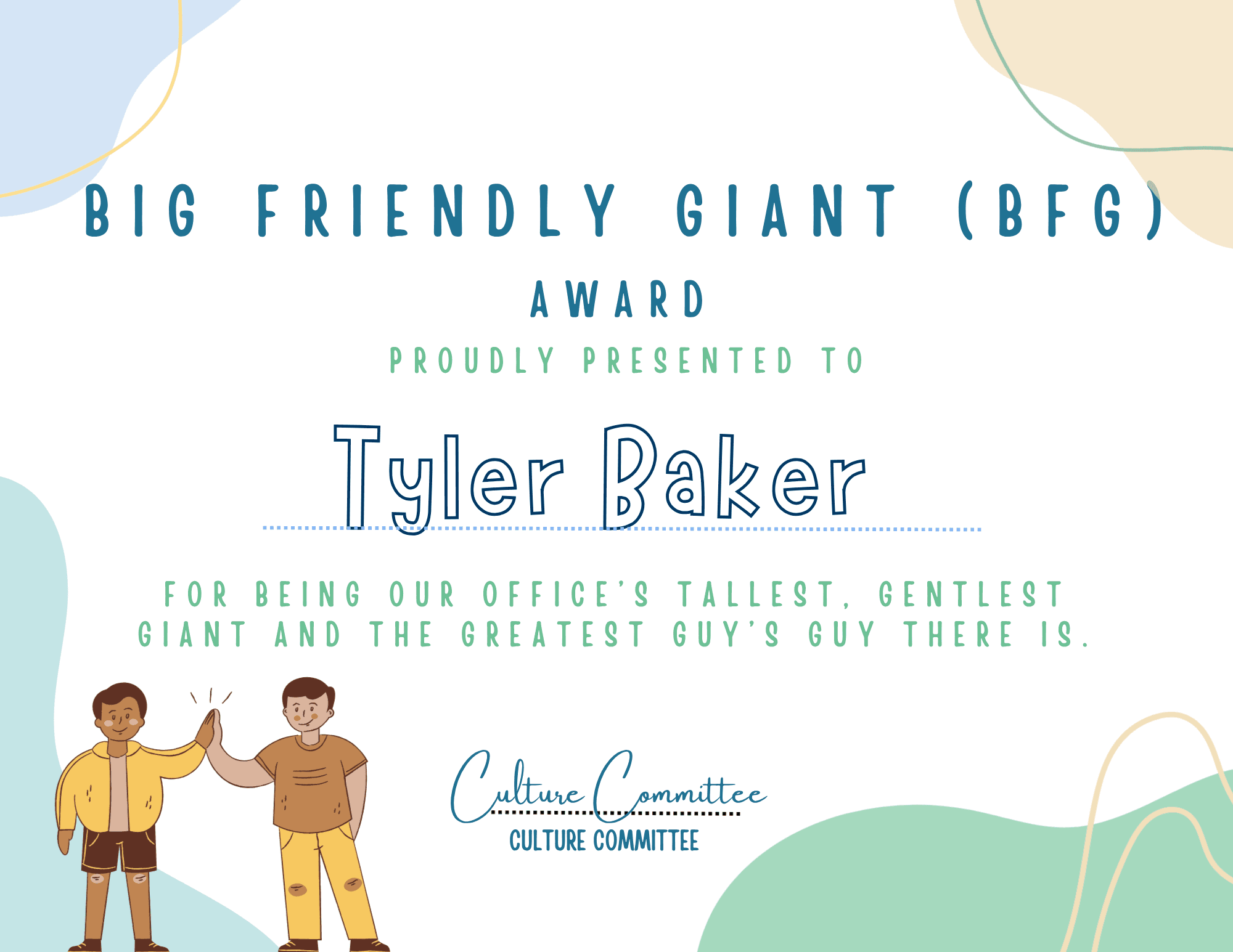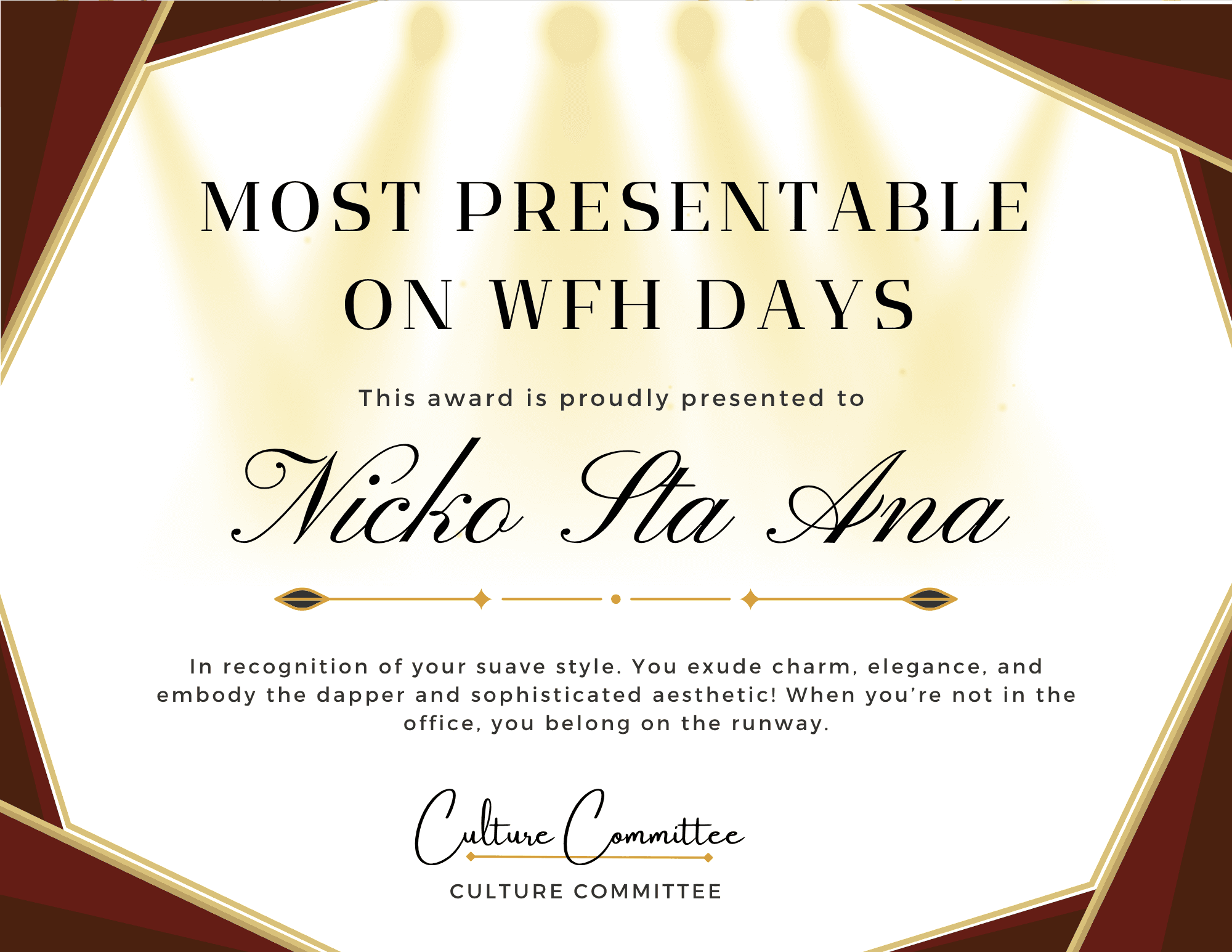 As the leader of the Culture Committee, I brought some lighthearted fun to our end-of-year holiday party by designing a custom collection of office superlatives for the team.