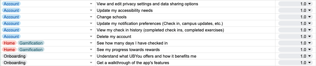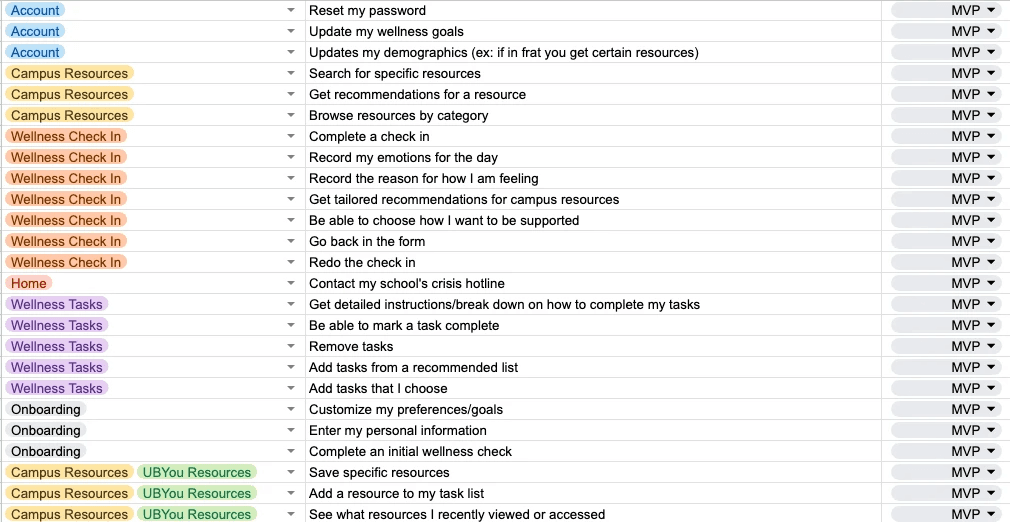 To ensure UBYou’s Minimum Viable Product (MVP) focused on the most impactful features within the time constraint of the project, my team and I carefully analyzed user needs and business goals.